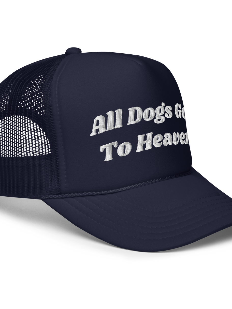 All Dogs Go To Heaven Rope Trucker• 100% polyester front• 100% polyester mesh back• Structured, 5-panel cap, high-profile• Matching color braid and sweatband• Adjustable plastic snap• One size fits most
